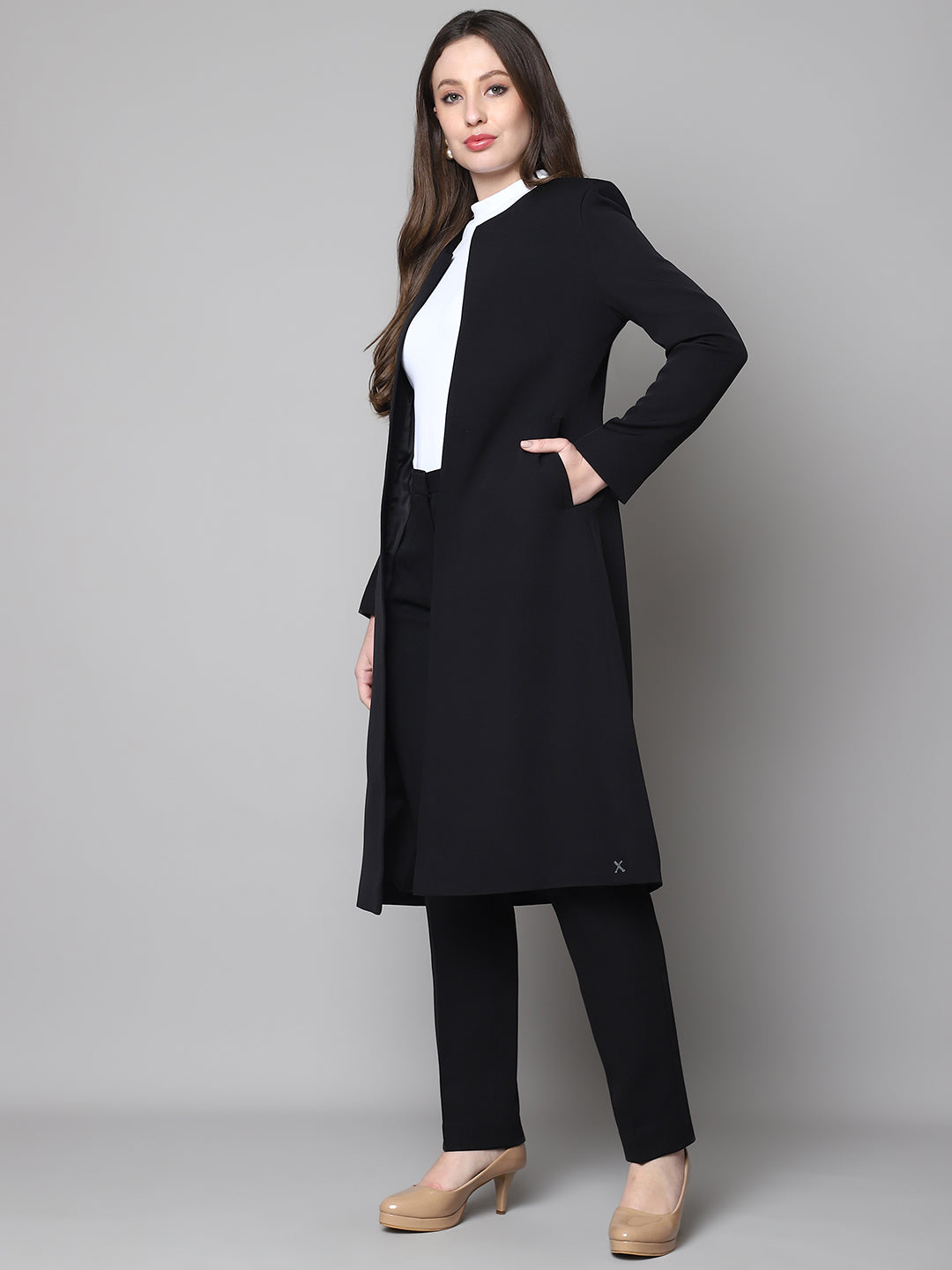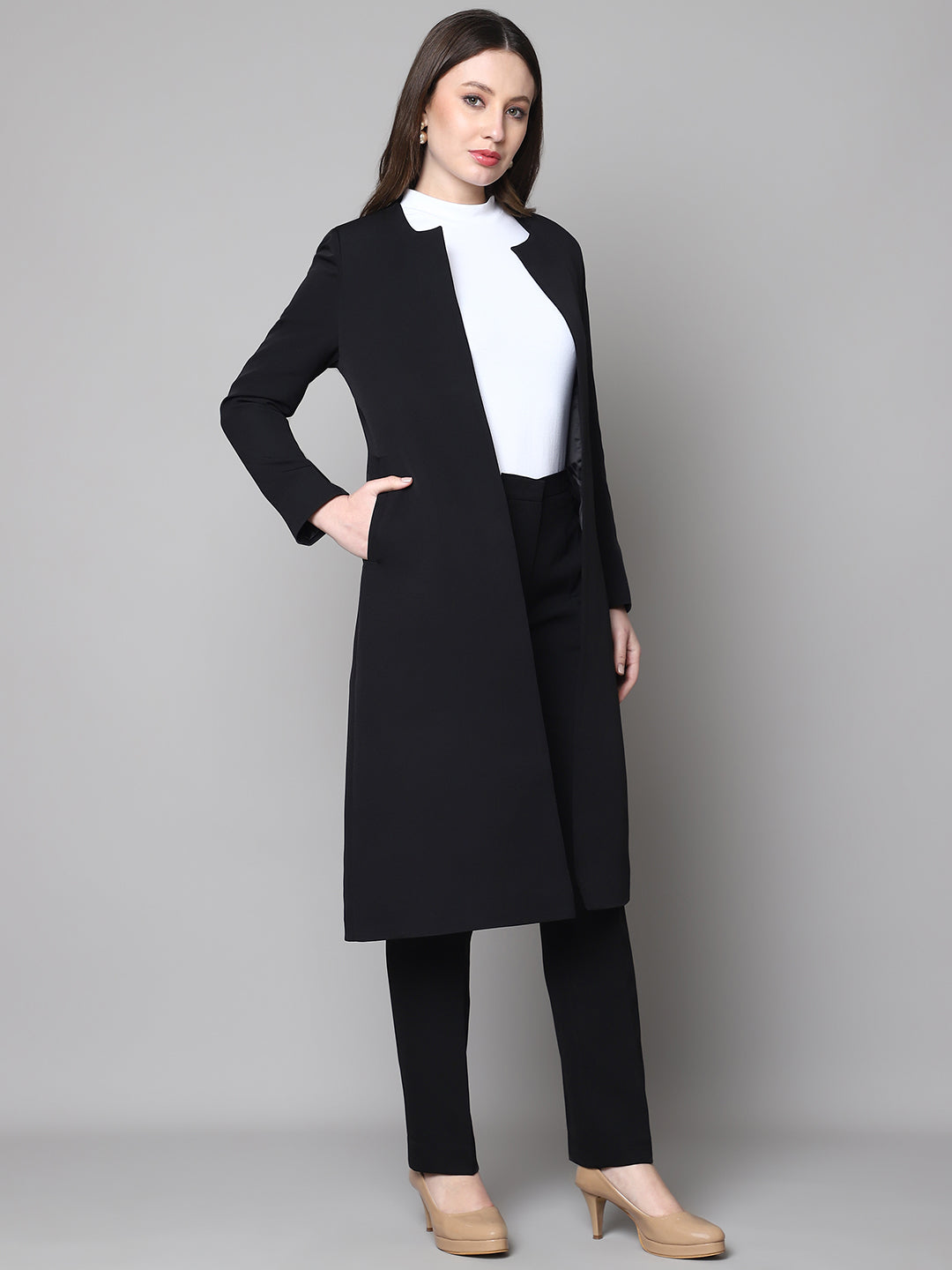 Exude Crowned Confidence Long Blazer (Black)
