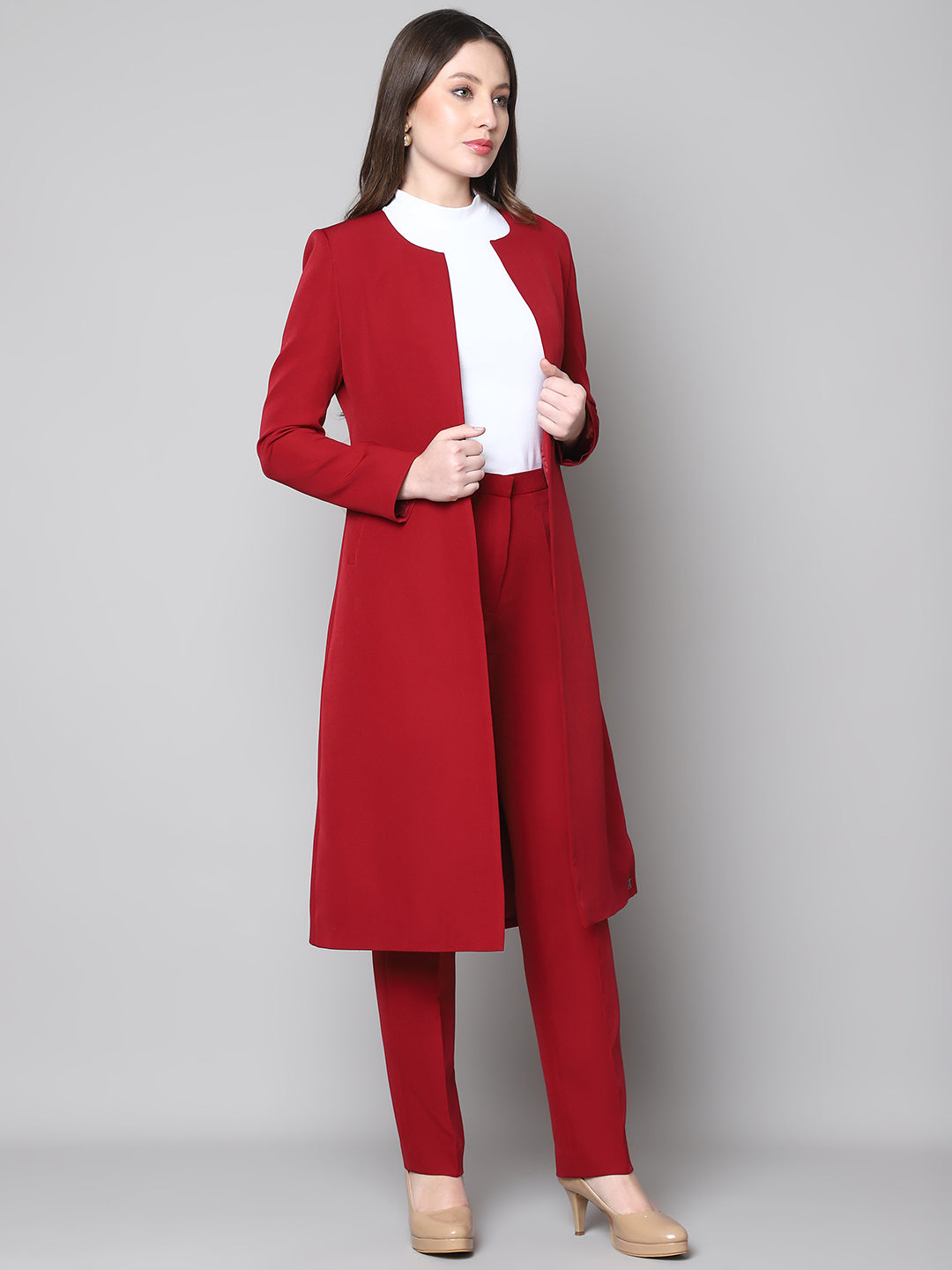 Exude Crowned Confidence Long Blazer (Red)