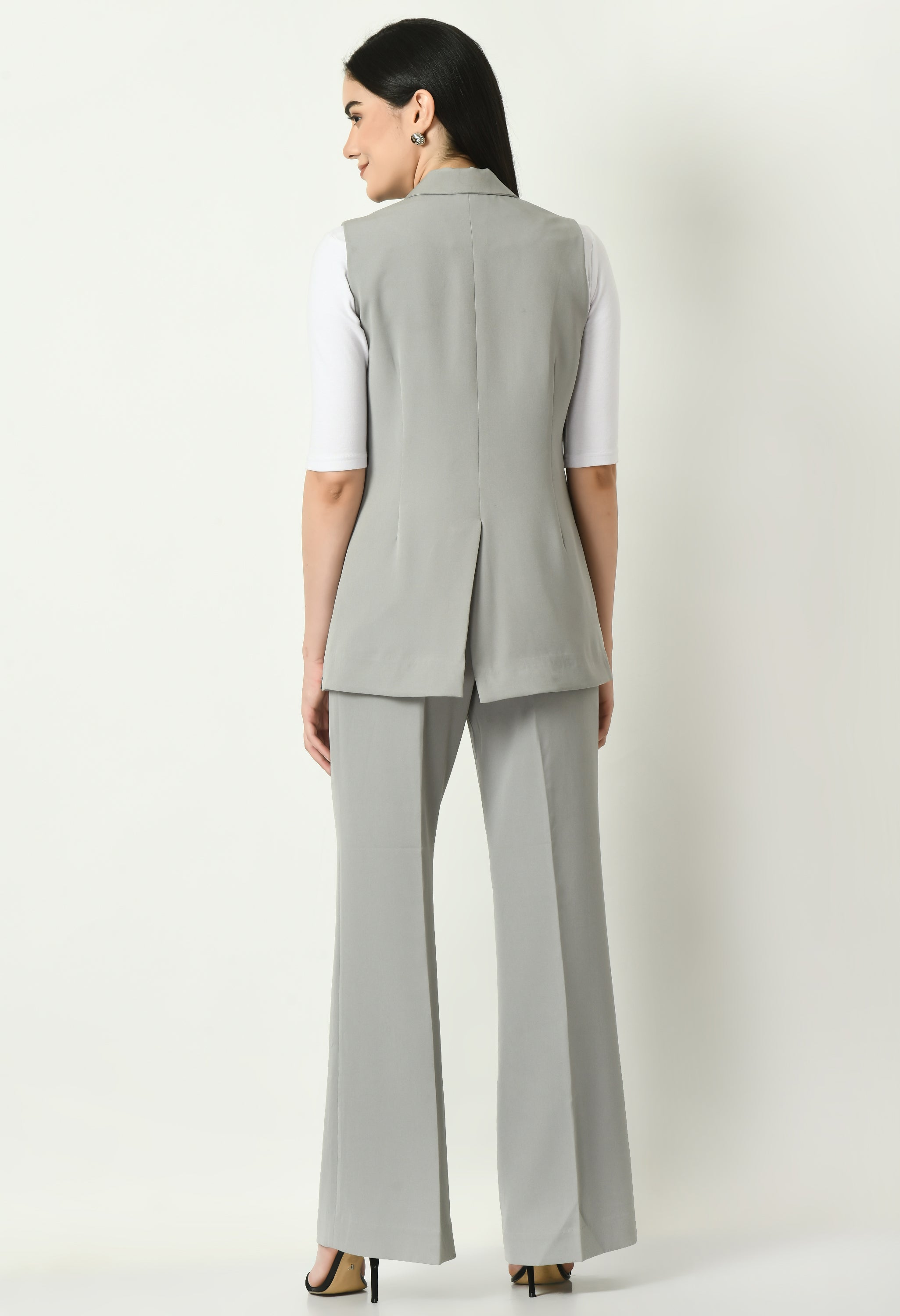 Exude Aspiration Sleeveless Blazer with Bootcut Trousers (Grey)