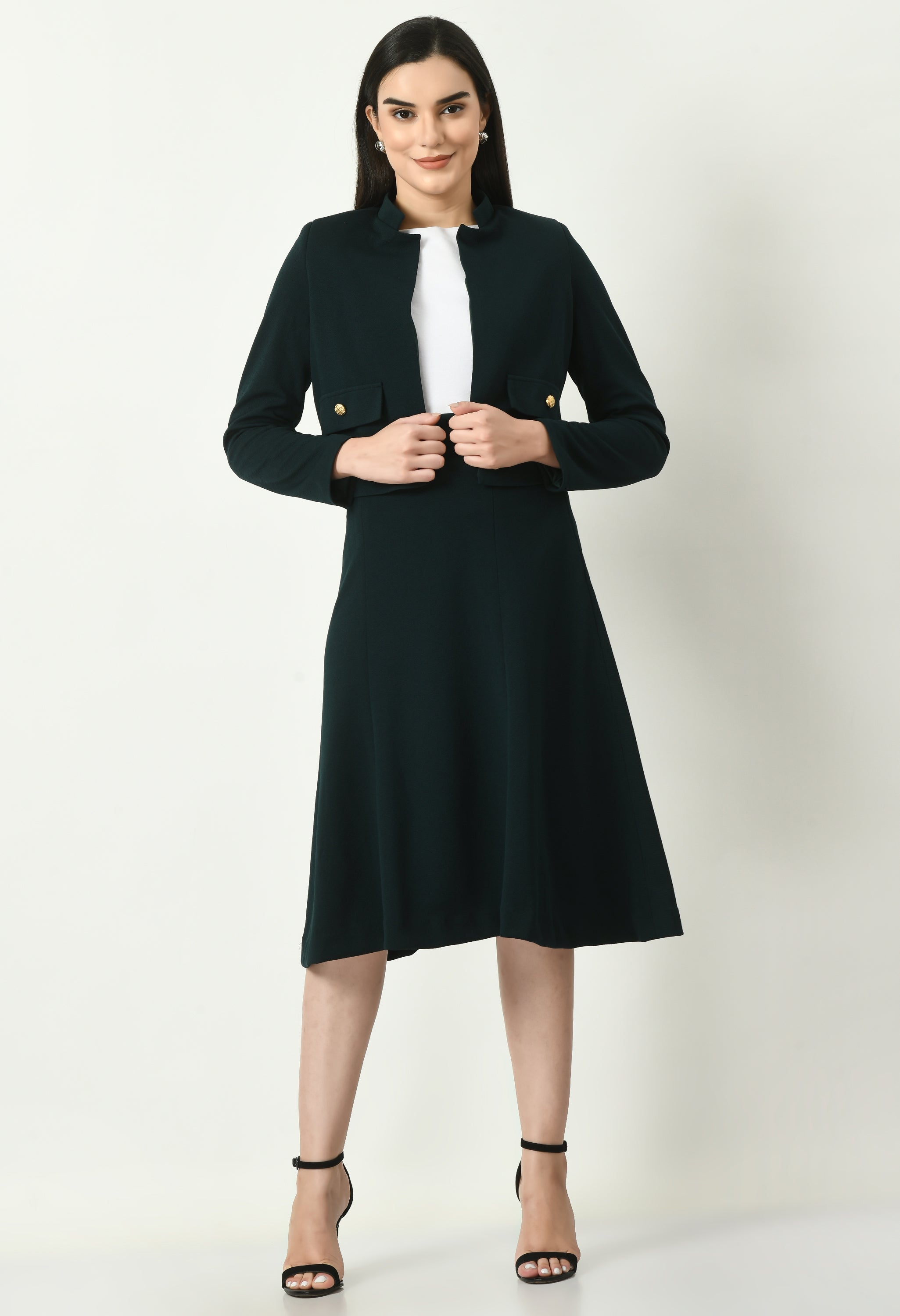 Crafted from a premium poly-lycra blend, the long open-front blazer features sharp tailoring and a structured silhouette, while the straight-fit trousers create a sleek, elongating line. This versatile co-ord set transitions effortlessly from high-stakes boardroom meetings to chic evening events, embodying the trending power...