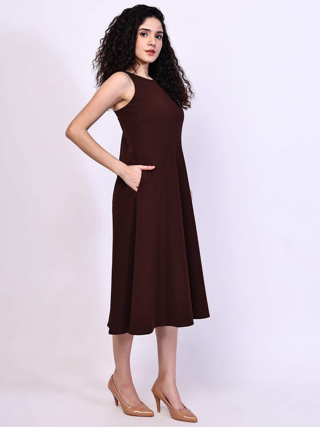 Embrace timeless elegance with the Exude Golden Glow Brown Maxi Dress. Designed in a graceful long silhouette, this sleeveless dress blends effortless style with practical sophistication. The clean lines and flowing fit create a look that’s both flattering and versatile, while discreet pockets add a touch of modern functionality. Crafted from premium fabric in a rich brown hue, it offers the perfect balance of comfort and refinement — ideal for day-to-night occasions where you want to shine with understated confidence.