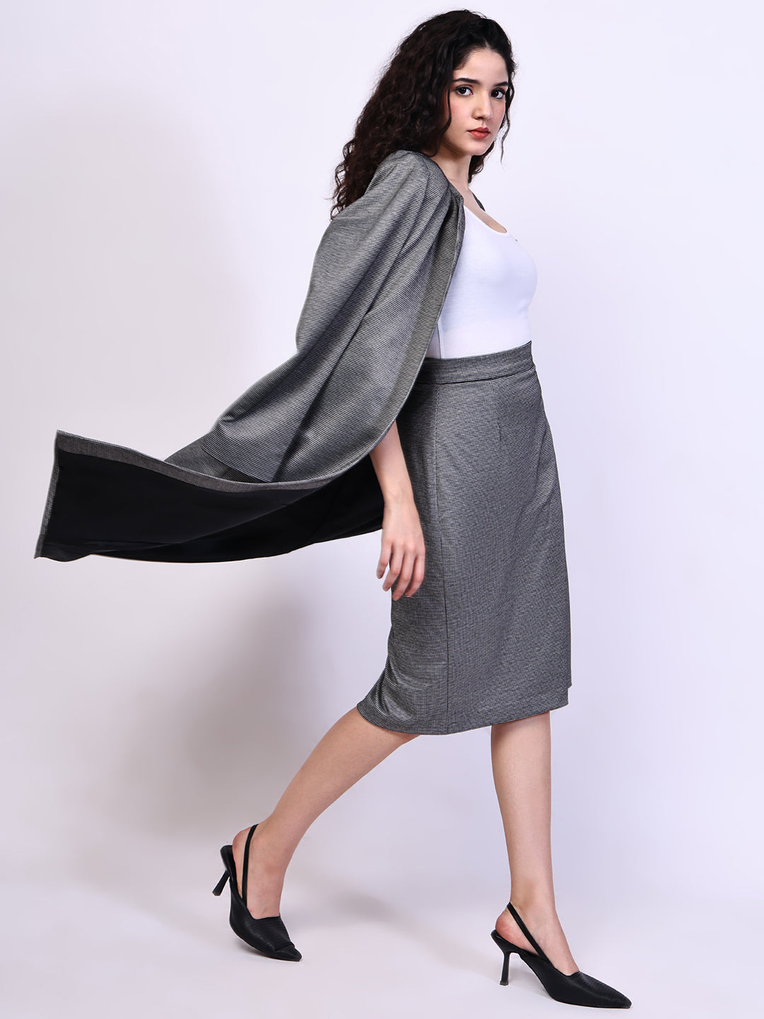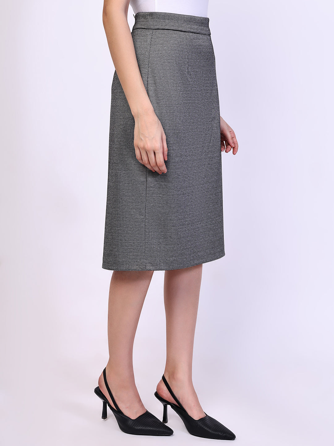 A classic black and white pencil skirt with a self-stripe design all over, featuring natural stretch. Soft lining has been carefully stitched to ensure it stays in place and sits comfortably against the body, giving you all-day comfort. Pair it with a matching blazer to create a great business suit look. The colour may vary slightly according to device settings.